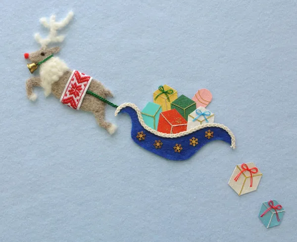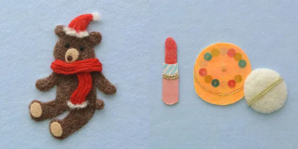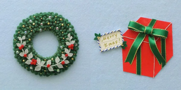 羊毛フェルトの原画です。紙や布、ライフラワー、リボンなども