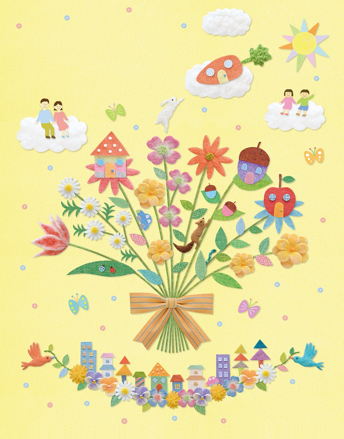 今の私たちの生活の営みは、自然界からの贈り物として花束をイメージしました。
